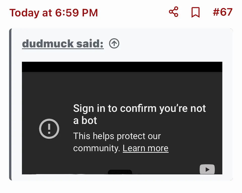 make sure you're not trying to watch youtube video from safari browser. Use only the youtube app. You might need to sign out of the youtube app, under account./—-/ For a week I can’t access videos on my iPhone 12. Even if I have YouTube open, there’s no way to log in. Any suggestions?