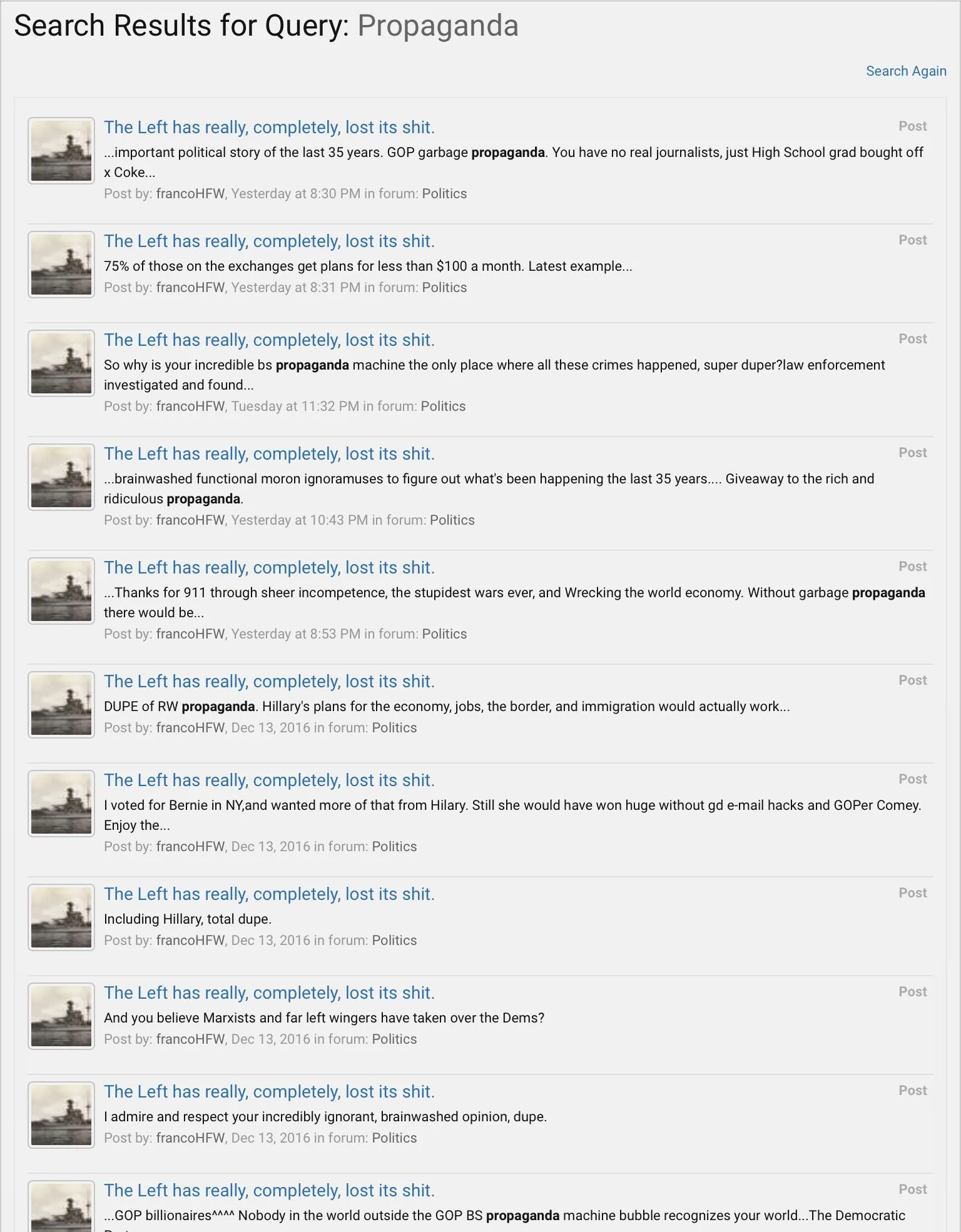 Of course, they find a reason to lose their shit every day. Apparently, just being alive is all they need to be offended every second of every day. Just when you think it can't get worse, they fall apart over the tiniest thing. You really have to stretch your imagination just to try and see how they managed to be offended. They have learned how to turn virtually everything into a scandal, conspiracy theory or other offense. No one or nothing is safe from their mental illness.