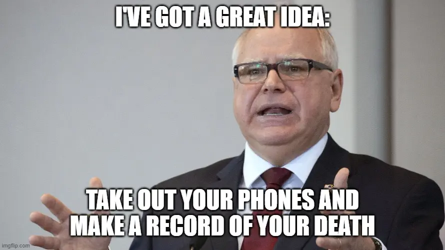 How about Walz calm down the public vs. winding them up.....~S~( How bout Walz let ice into Every Jail & Prison to arrest Criminal illegals there instead of out in the hostile streets )