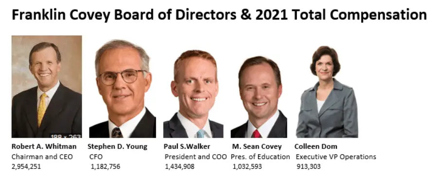 It's even true of companies which sell diversity training. This is the board of Franklin-Covey, a company which sells bias training to companies for big bucks...