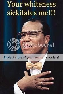 Funny, you say whites are afraid of blacks, Farakhan says blacks are afraid of whites.Don't forget to charge your hov around an bring dependsI'm ready to do battle. A good ethnic cleansing of left-wing shitbags is what this country really needs.
