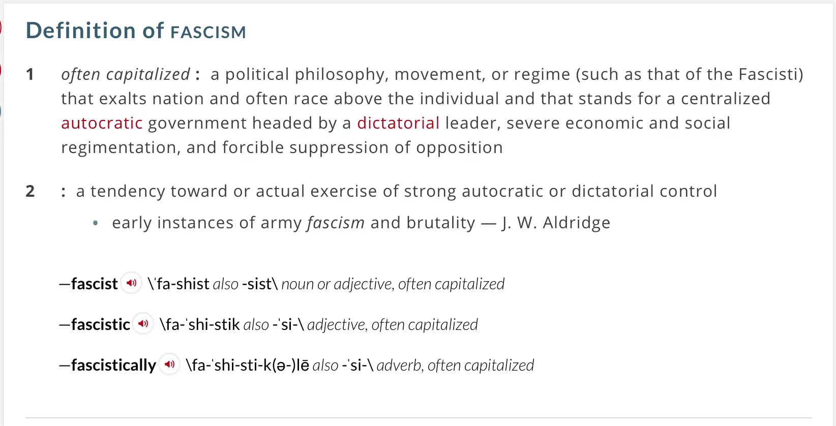 Well would you look at that! "...that stands for a centralized autocratic government". Damn, Slade3200 - that sure sounds left-wing to me!!! How about you, snowflake? That was some good advice my fascist friend - a dictionary does get "right to the point". Thanks!