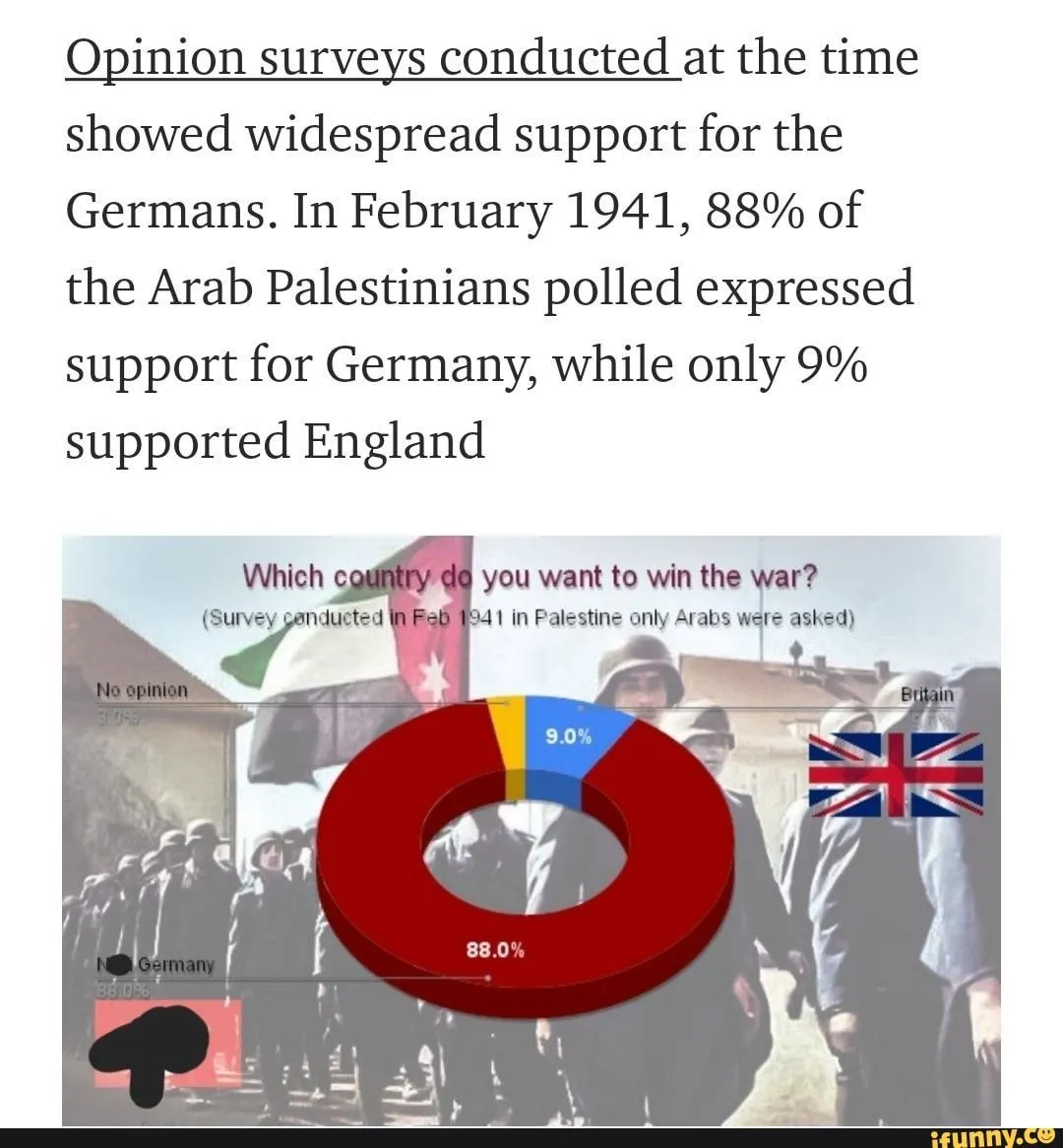 "The Palestinian people were not responsible and cannot be blamed for the Holocaust. Most Palestinian Arabs, however, supported the Mufti and applauded his radio remarks."