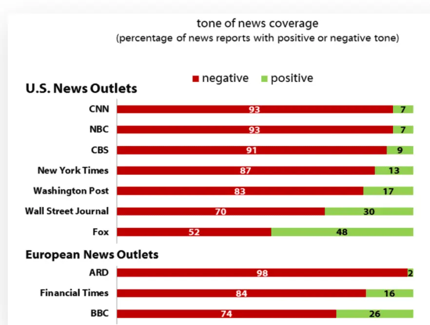 Every news outlet in the study was negative more often than positive.