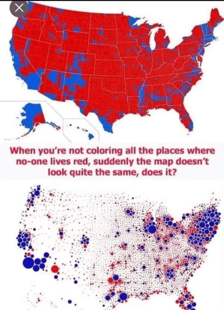 Incredibly deceptive/dishonest, but I’d expect nothing less.I never thought to look at it this way. It turns out that majority of the POPULATE America is actually Blue, not red