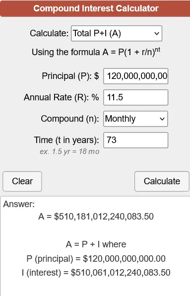 And then, show the math that turns $120 billion in the 50s into 1.239 quintillion 2019 dollars by adjusting for inflation.
