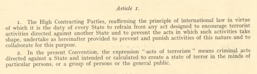 This may have been overtaken by WWII and the subsequent 19(+) Counterterrorism Conventions, the definition still rings true. And it fits the Arab Palestinians perfectly.