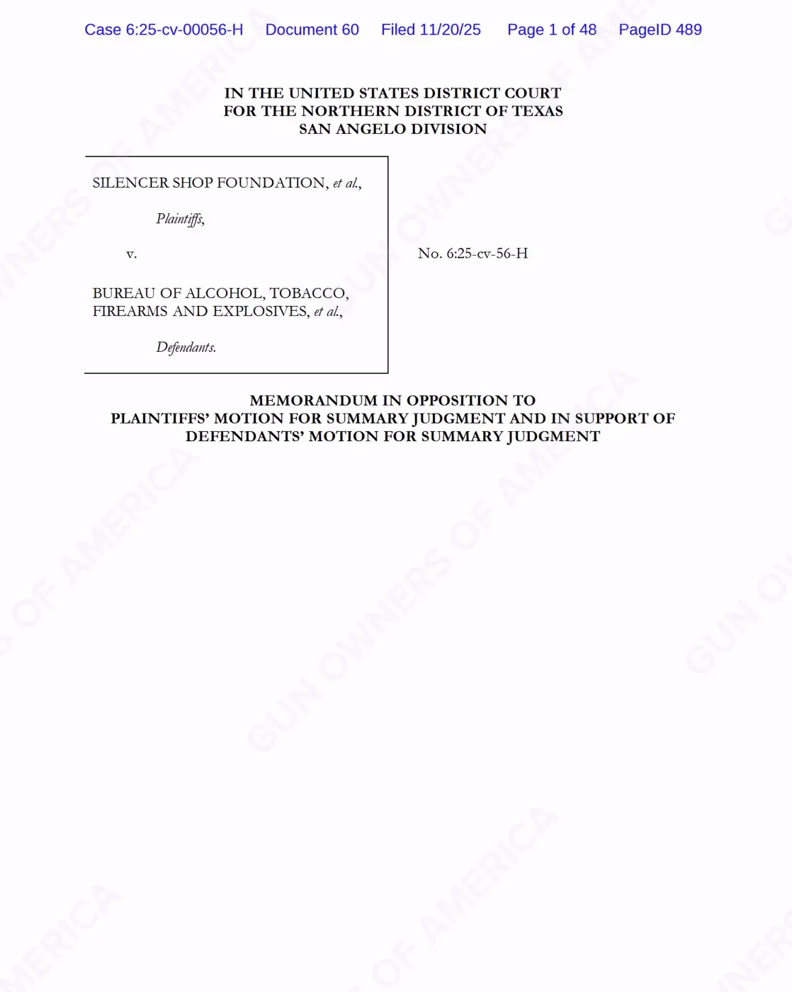 AG Barbie, er Bondi has joined the ATF in Silencer Shop v ATF by supporting the ATF's filing for summary judgement, in effect, defending the NFA.