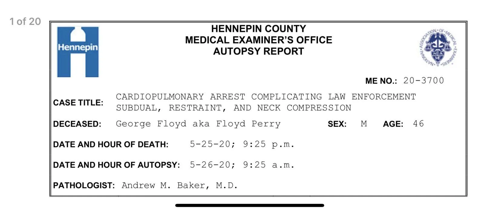 Show me where it says the cause of death was a knee on the back of the neck. You know it was partially on his shoulders. It is what the cops are taught to do and it is proven not to be a death hold.
