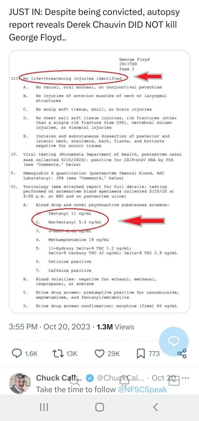 It said no life-threatening injuries. What about that don't you understand. Did you see the amount of drugs in his body? You know he had a bad heart right?So the DOJ and Cardiologist are wrong? You are motivated by a desired outcome. Not truth.