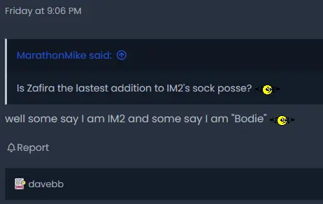 yep. And I am not "Bodie" nor am I associated with this psycho.They are all the same jackass. Cultsmasher running multiple socks.