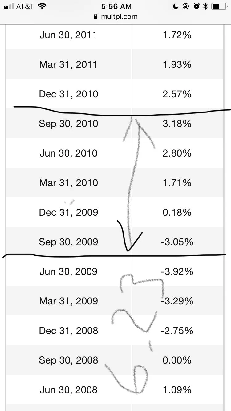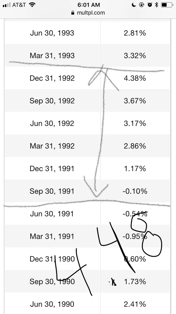 Since you have not provided a source or calculations to back your bullshit I found the most recent recession when there were negative GDP Quarters.