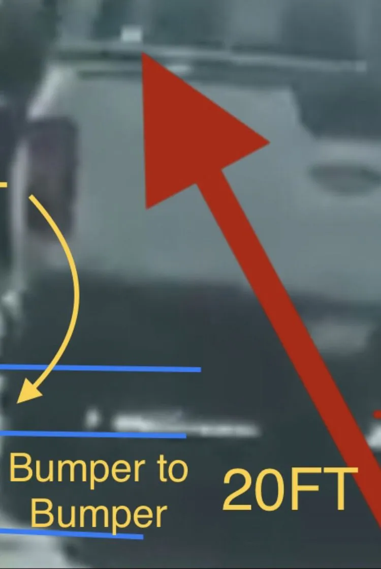 If TM is 3 feet from the bumper as you insist, that means AA is also 3 feet from the bumper. And reality is, unfortunately for you, is that if AA is 3 feet away from the bumper you would see his feet not his shadow and there would be no daylight visible. And that is pure scientific fact.