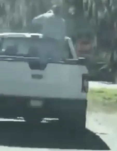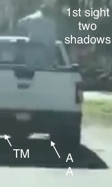 # 3 is an image between image #1 and 2. This proves TM was on an attack maneuver because he deliberately put himself in a blocking position to be set in preparation for AA coming towards him around the passenger side of the truck. It makes no sense to deliberately get that close to making physical contact wth AA, with the shotgun pointed at the ground.