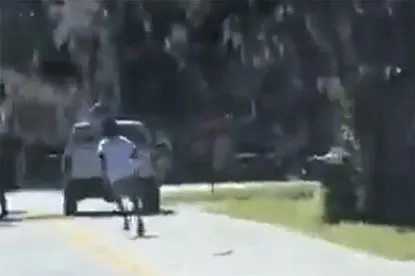 Just then they look up and see him running directly at their vehicle after having committed a violent crime of attempted carjacking on roddy
