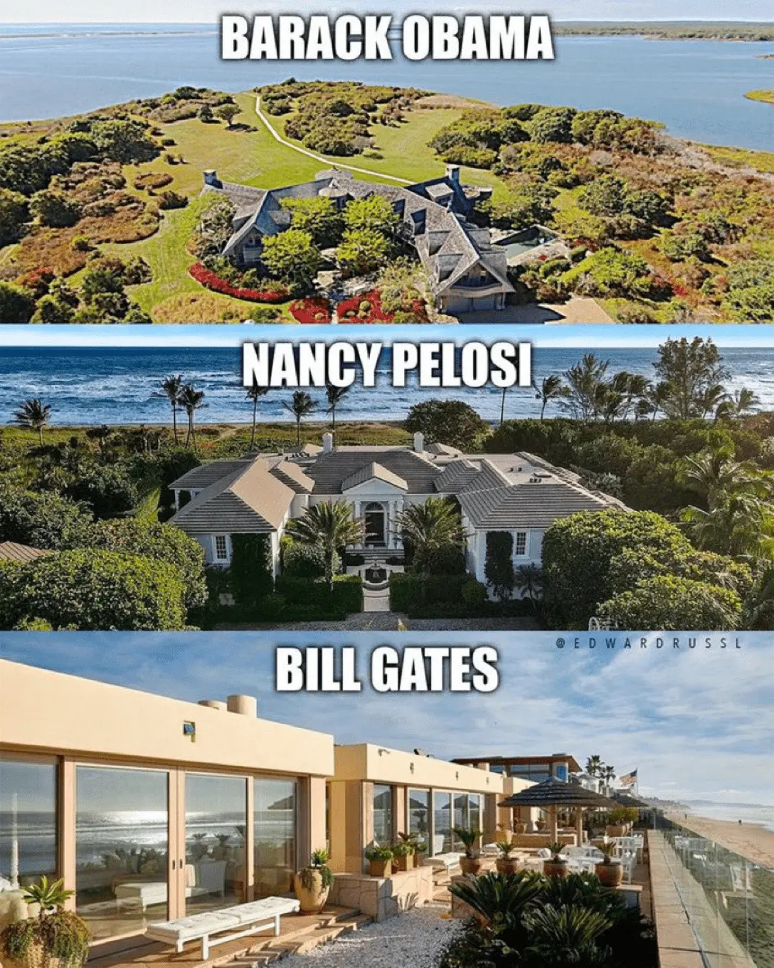 I don't know about the other two, but Nancy Pelosi does not live in an oceanfront home. A recent rumor that she was moving to Jupiter, Florida is false.