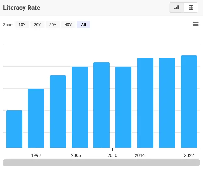 View attachment 1202102Venezuela Literacy Rate | Historical Data | Chart | 1981-2022