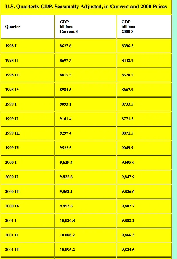 Who knows where on Earth you get your numbers from? But the BEA produced these numbers (notice, they're nowhere near the figures you post):You're a ******* retard. You think I should believe you and not the NBER???As always, you prove to be too retarded to make a cogent argument. First off all, you're referencing nominal figures, not real figures. Too ******* stupid.So "recessions" are just like water faucets. You turn on a faucet water comes out. Recession starts immediately... is that your perception?No recession started under Clinton. That's a lie and that's as far as I got in your post since it's reasonable to assume that everything else you posted is also a lie.