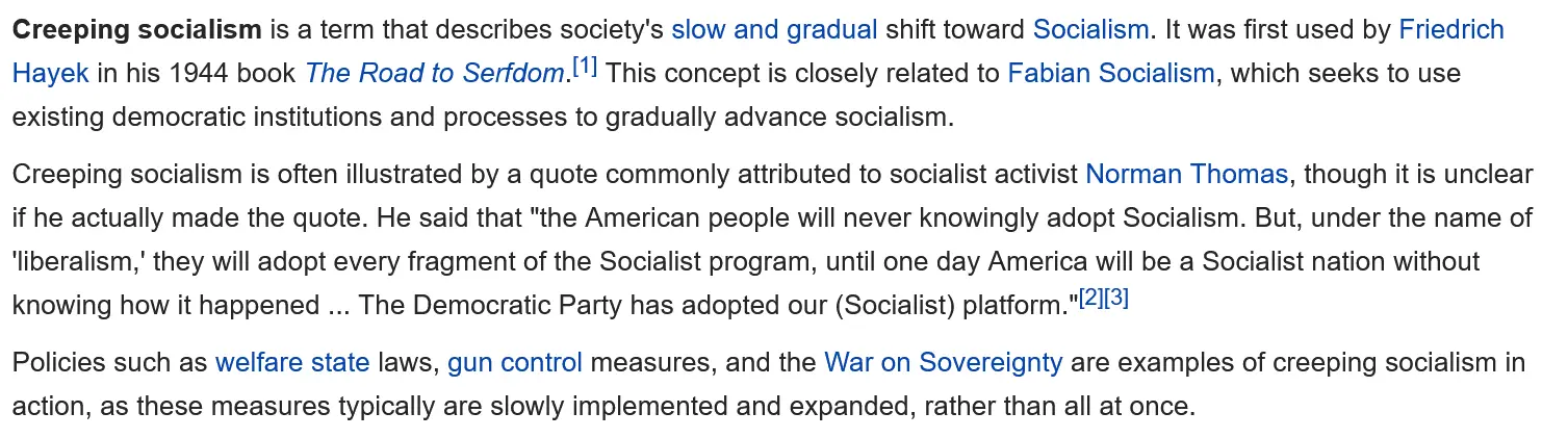 It is really the first 2/3 of that def that gets people. What people are afraid of is the phrase Creeping Socialism (this one from Conservapedia