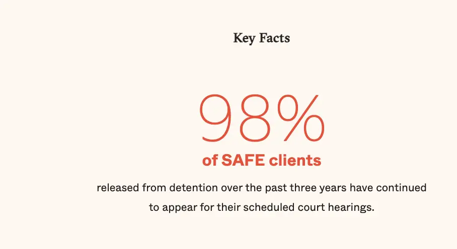 The 98% and 95% figures are for adults and children represented by lawyers in that "org." so of course they have a reason to pump up their number. My guess is that when a client does not show up, they drop them as clients and therefore they do not count in the figures of "SAFE clients."