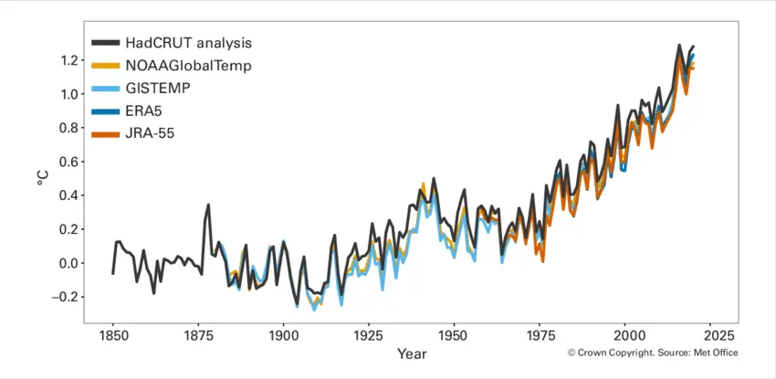 1) Is there evidence of a steady rise in the Earth's temperature, say since the industrial revolution?