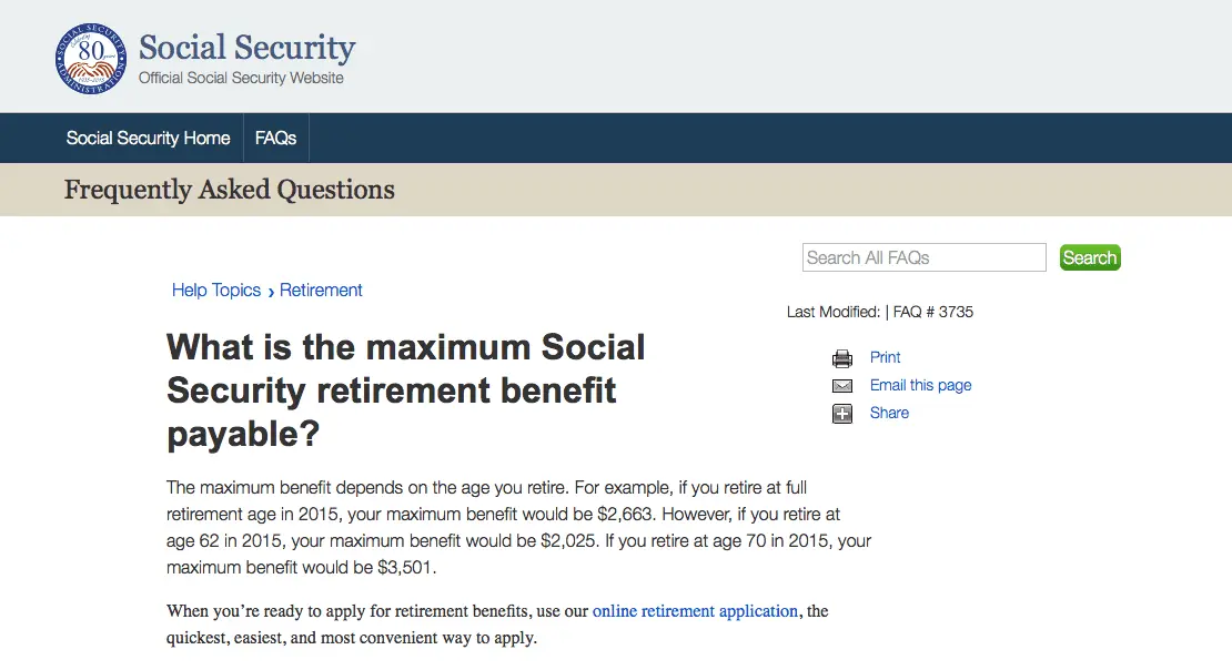 B) For example, if you retire at full retirement age in 2015, your maximum benefit would be $2,663.