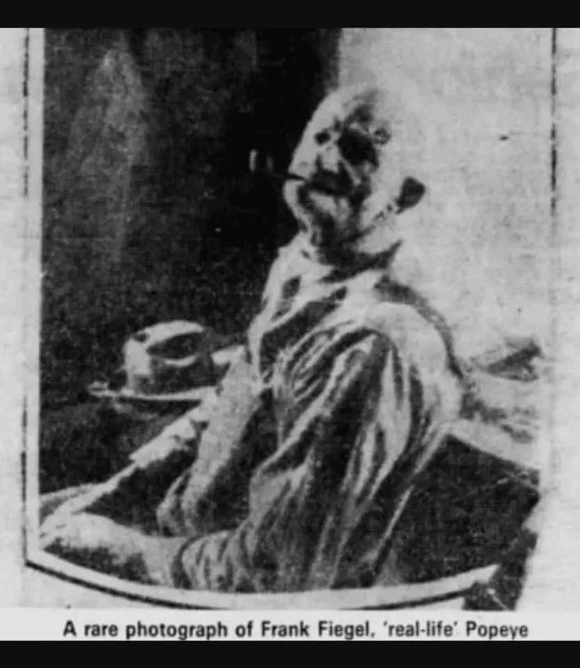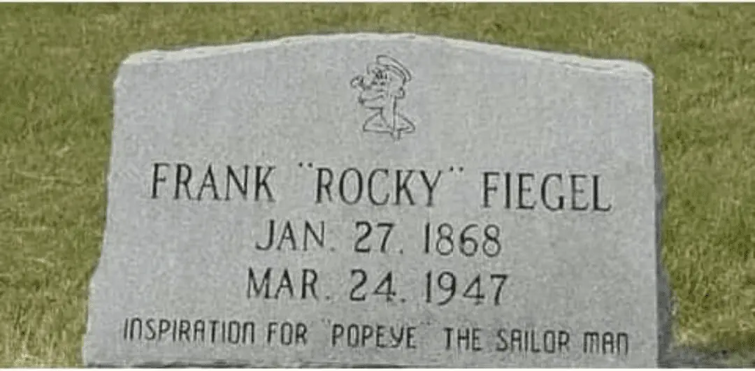 The creator of Popeye, Elzie Crisler Segar, grew up in Chester and, as a young man, met Rocky at the tavern and would sit for hours listening to the old sailor’s amazing ‘sea’ stories.’ Years later, Segar became a cartoonist and developed a comic strip called ‘Thimble Theater.’ He honored Fiegel by asking if he could model his new comic strip character, ‘Popeye the Sailor Man,’ after him. Naturally Fiegel was flattered and agreed.