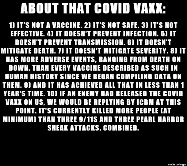 These mRNA injections are not at all vaccines, and instead try to grow spike proteins in our own cells, which is extremely risky.