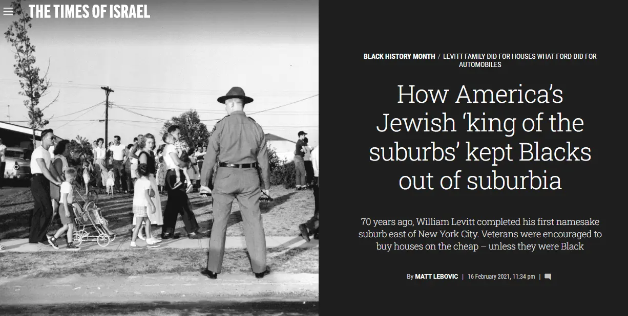 And that was done, in part, by a white Jewish man called William Levitt and this white flight to suburbs was subsidized by the government, which spent billions on highway construction and low-cost loans, essentially available only to whites in those newly developing residential spaces.