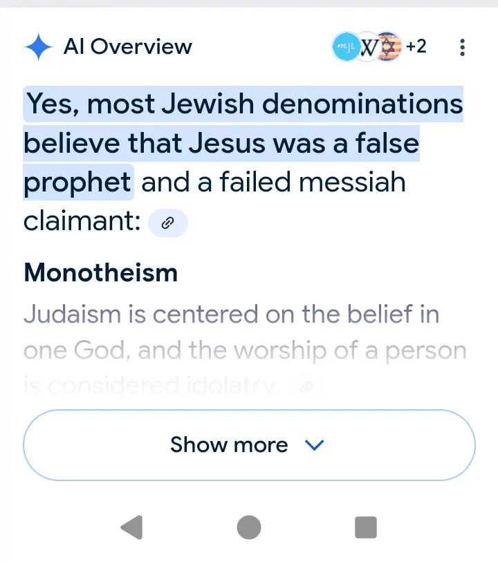 this is incorrect and is a major reason why one should not trust the "AI" responses. According to Judaism, the time of prophecy had ended 300 years before Jesus was born so, no, we don't consider him a prophet, failed or otherwise.Like I said, she REALLY believes he was a false prophet. She was being diplomatic -- lying