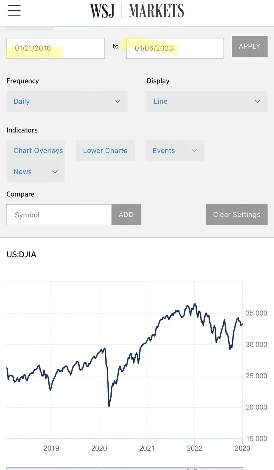 The highest the DJI got under Trump was 31,223.78. Today it is at 33,630.61