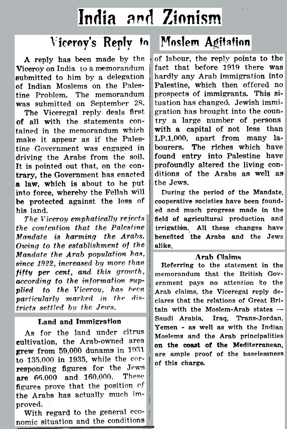 The British officials at the time, and later demographers, insist there is no evidence of large Arab immigration. Some people, like Joan Peters and Fred Gottheil, bring evidence for such immigration from neighboring Arab countries to Palestine. Gottheil in particular showed that even within Palestine, the Arabs would move near where the Jews were concentrated, because the economic opportunities were coming from Jewish areas - and there is no reason to think that Arabs outside Palestine weren't similarly attracted to the booming economy that came from the Jews.