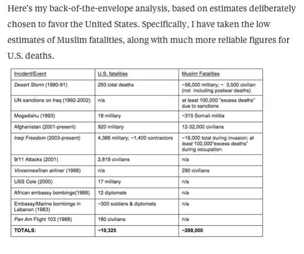 Why they hate us : How many Muslims has the U.S. killed in the past 30 years?