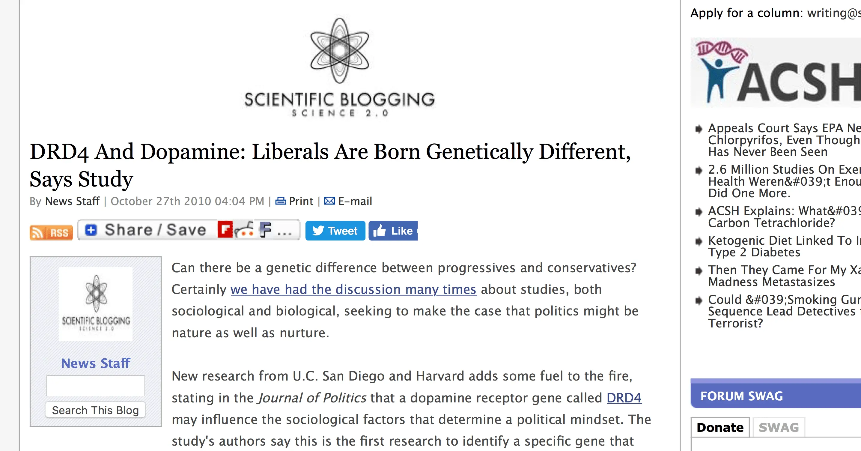 DRD4 And Dopamine: Liberals Are Born Genetically Different, Says Study