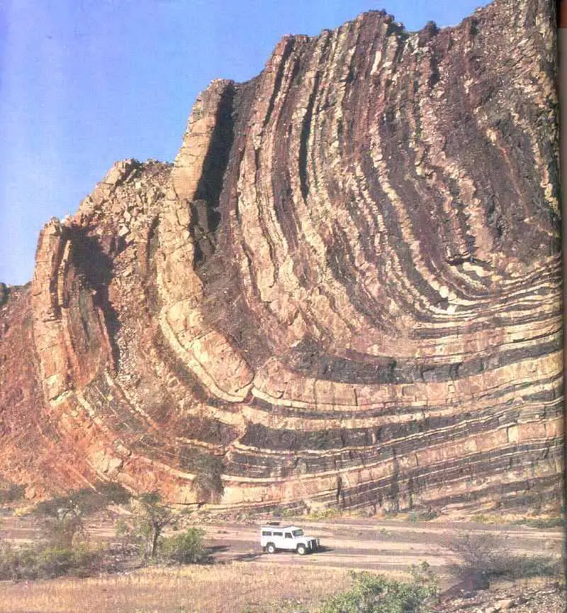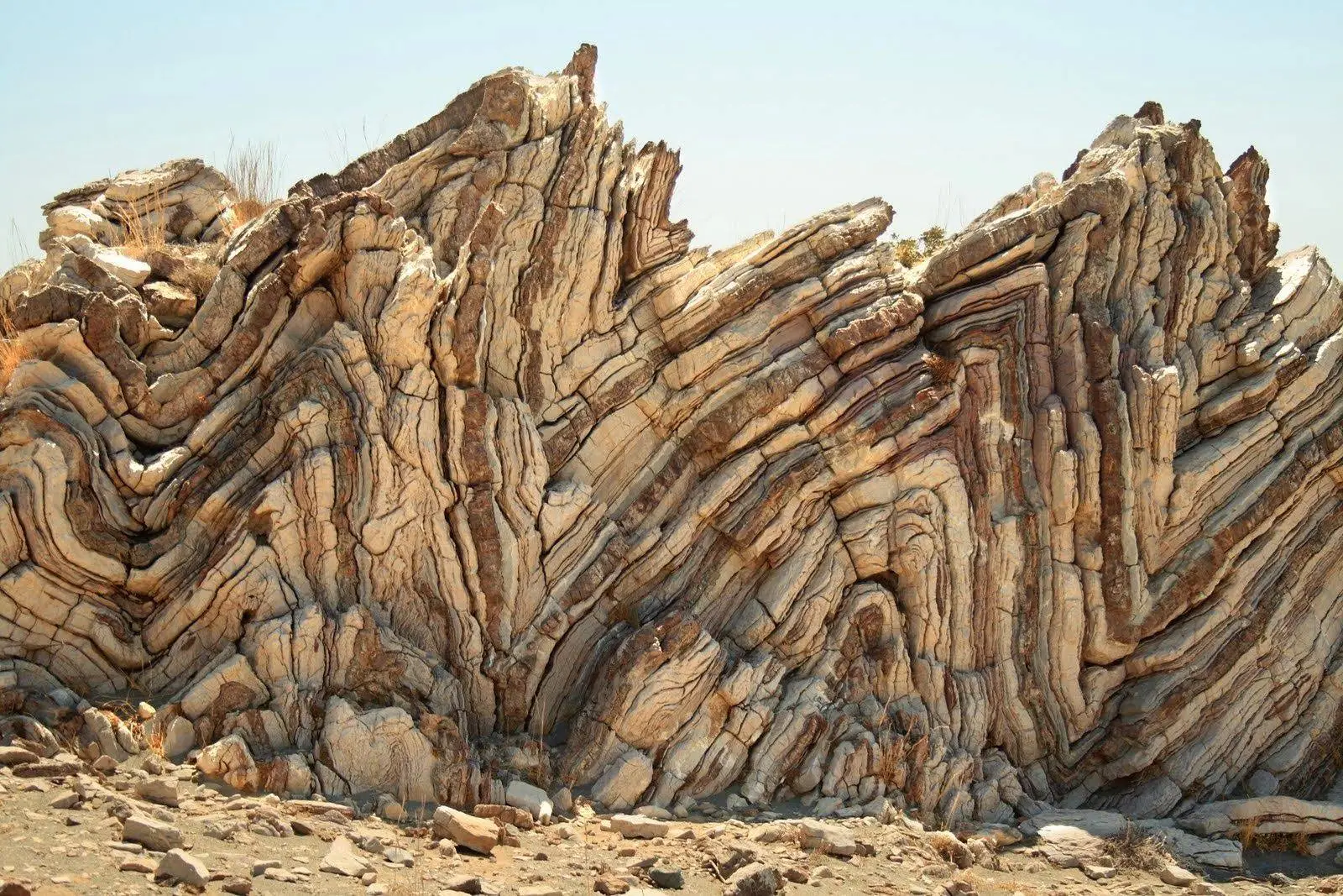 Folded rocks. All those layers had to be mud, rock doesn’t bend.