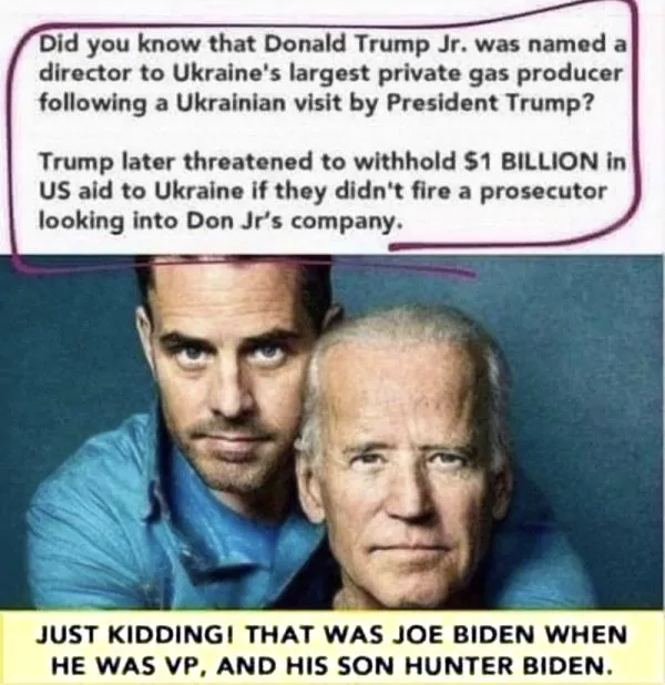 - In 2019, the Democratic-led U.S. House of Representatives launched an impeachment inquiry into Trump for asking the government there to look into the Bidens’ activities, yet we found no evidence that Hunter Biden himself was ever investigated by either Ukrainian or American authorities for his role as a board member of Burisma, despite the fact that Hunter's role there and the CONFLICT OF INTEREST it represented to VP Joe Biden and the Obama Administration oddly mirrored exactly what the House Democrats were impeaching Trump over for claiming!