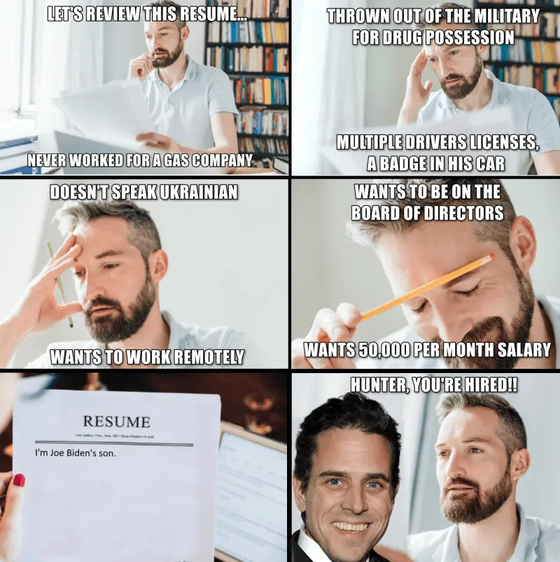 - A corrupt Ukrainian oligarch put Hunter on the board of his gas company, even though he had no experience in Ukraine — or in the energy sector. None. Yet he was paid millions to do nothing.