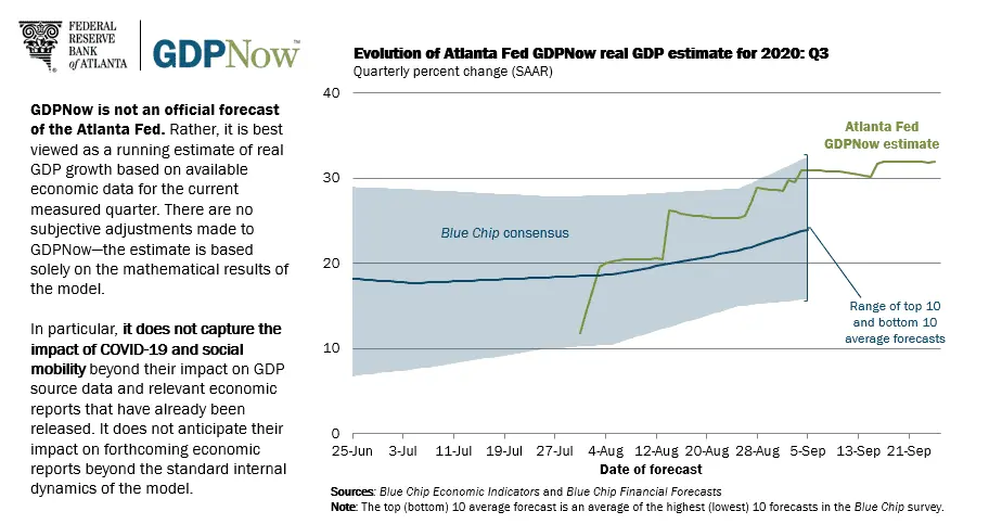 With less than 10 days to go, the current GDPNow estimate for Q3 is an eye-popping 32%.