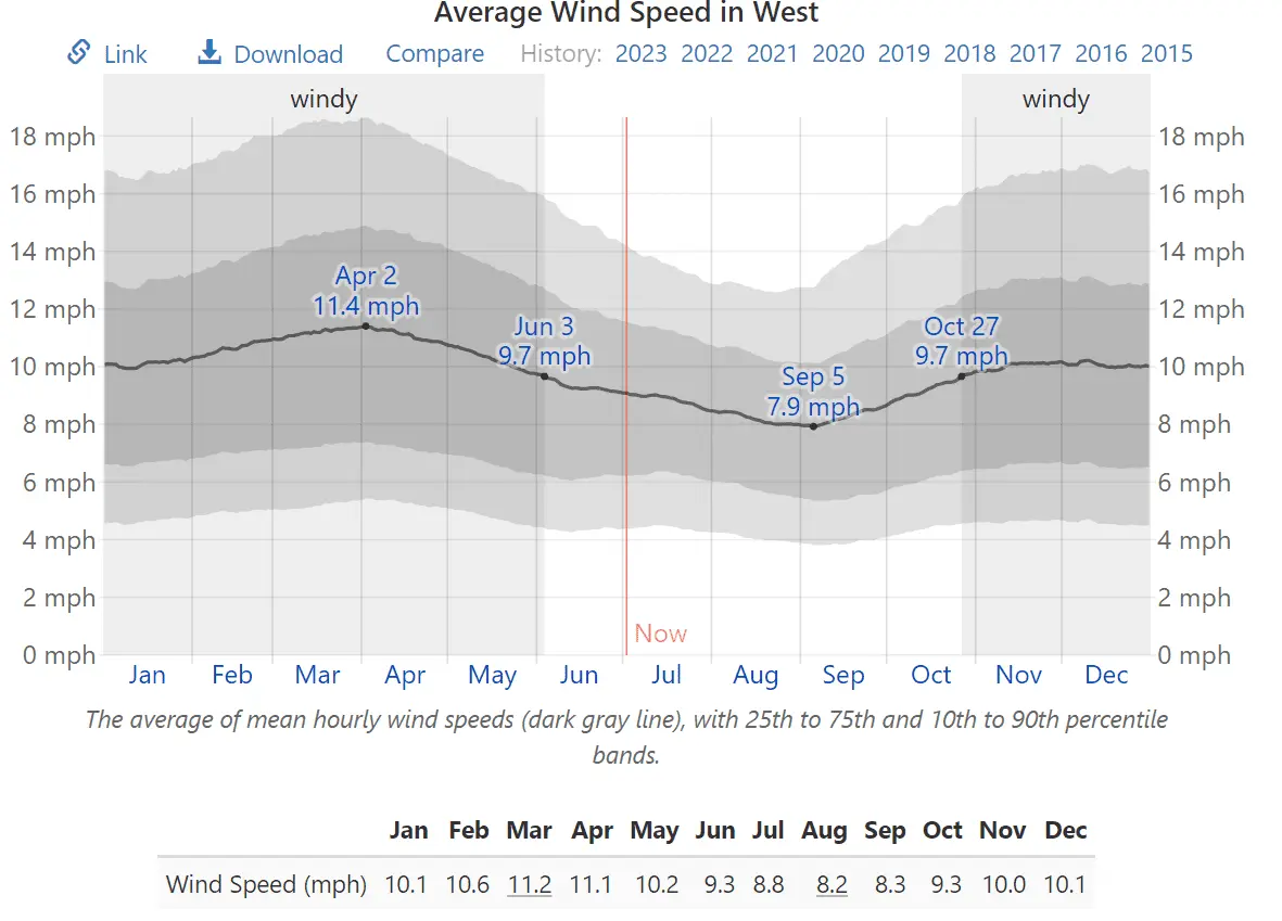 Average Wind Speed in West Texas