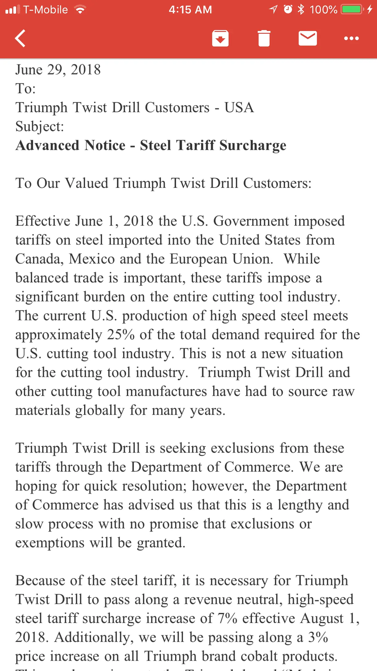 Steel using industries are blue collar jobs as well. How many jobs are going to be lost in these companies.