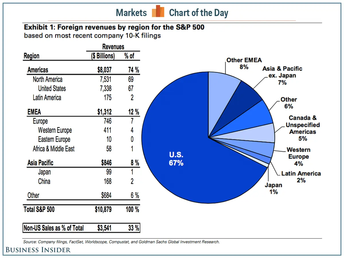 Hmmmmm......our biggest companies get about one-third of sales overseas.