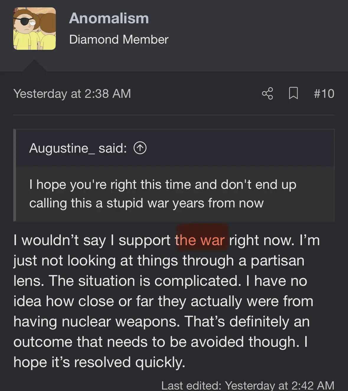 Here’s the thread author himself yesterday, killing this thread: