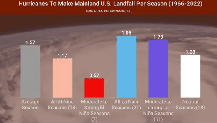 1 Cat 3 strike on the US coast (we had 3 Cat 5s and 1 Cat 3 in 2005)