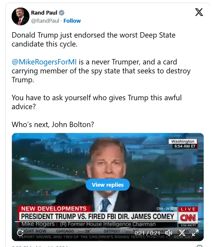 MAGA Senator Turns on Trump, “Just Endorsed Worst Deep State Candidate”