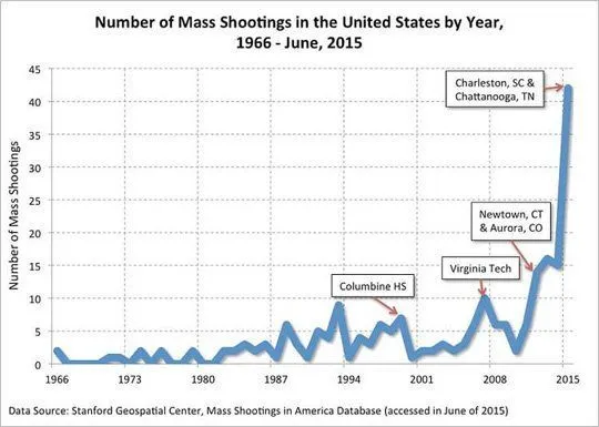 It might have something to do with the fact that there is no legal definition of mass shootingI can’t find a more recent chart of mass shootings. But they just go up exponentially as the chart continues. But there is one common theme among the timeline charts compiled out there - they only go back to the 1960’s. For good reason - mass shootings of strangers began in the 1960’s. I’m not talking about what family members and gangs have done, they go back to the days BC. I’m talking about walking into a room of strangers or slight acquaintances like coworkers and just murder them.