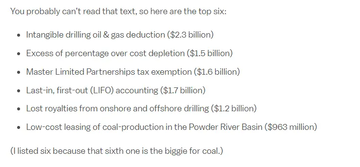 US fossil fuel production is subsidized to the tune of $20 billion annually