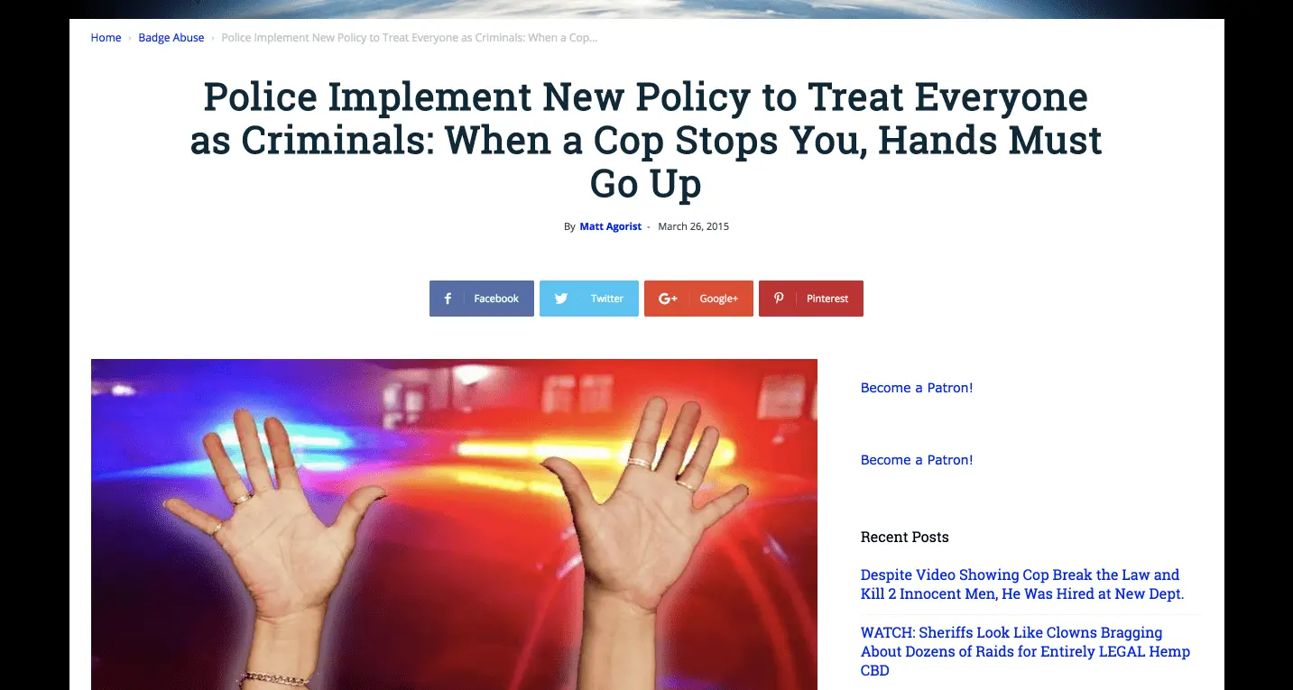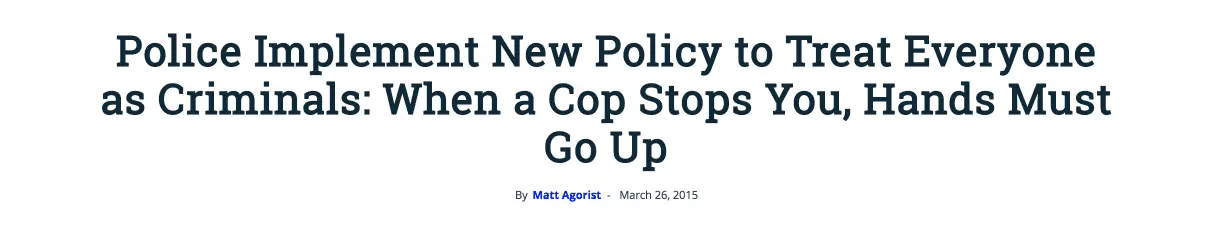 Police Implement New Policy to Treat Everyone as Criminals: When a Cop Stops You, Hands Must Go Up