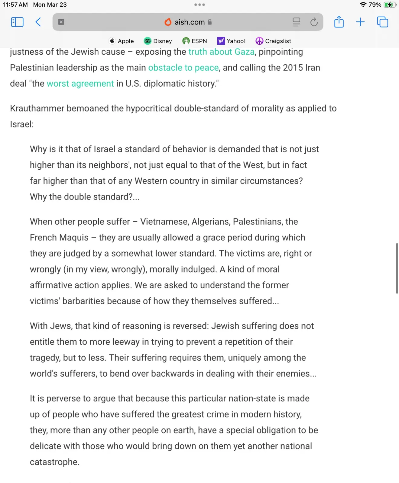 The great1Charles Krauthammer, may he RIP, wrote eloquently about the double standards applied to Jews, and Israel specifically. I sure miss the guy.