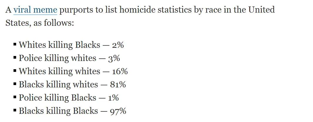 Rates of intraracial and interracial killings by civilians are similar, but police disproportionately kill Black people. A meme on rates is false.