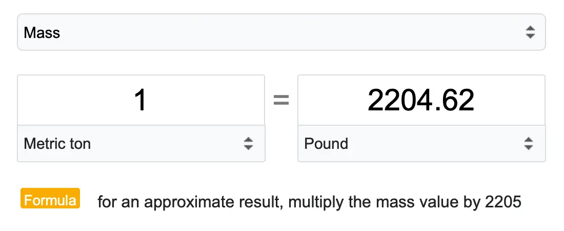 Now there are 2,204 lbs in one tonne... or 2,204,000 lbs at 300 lbs /barrel at 55 gallons or 404,066 gallons...